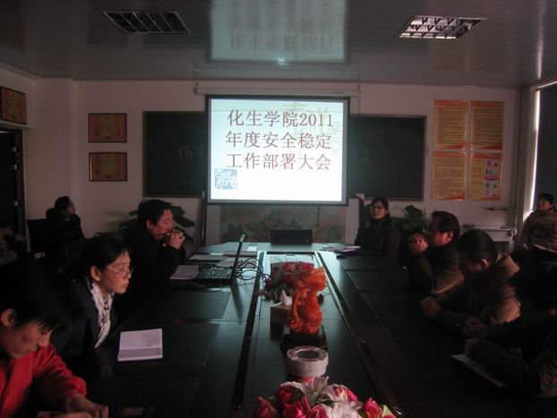 (学生通讯员 张小珍 王丽)为传达“我校2011年安全稳定工作大会”精神,进一步完善工作责任体系,3月16日下午,我院在理工楼会议室召开了2011年安全稳定工作部署大会。院内全体教工参加了此次会议,会议由院长郭孟萍主持。