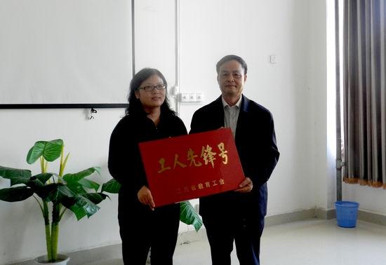 (特约通讯员陈陆明)11月2日下午,我校二教楼到处洋溢着喜庆氛围,我院成功被省教育工会授予“工人先锋号”荣誉称号,颁奖大会在我院办公室隆重举行。校党委书记王晓春、校长姚电、副校长朱笃在校工会主席周光凤等陪同下,专程来到我院表示祝贺。我院院长郭孟萍、党总支书记张翘楚、党总支副书记黄良辉及我院全体教职工参加了此次会议。