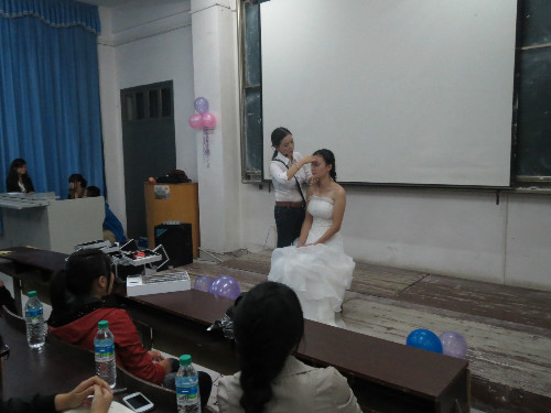 此次讲座主要围绕女生的服装搭配、化妆美容、健康饮食、自爱自保四个方面展开。其中,在化妆美容方面,胡玲老师为大家介绍了一些基本化妆工具以及化妆程序,并现场为大家演示。期间,她还进行现场提问,同学们纷纷举手回答,现场气氛活跃。接下来一些学生代表对秋冬季节应该如何正常饮食的问题阐述了自己的观点,同时强调女生应该重视饮食问题。对于安全问题,主讲员通过一段视频播放,让在场女生明白了如何在生活中保护自己。讲座持续了一个半小时,最后在一段精彩的走秀中,讲座圆满结束。