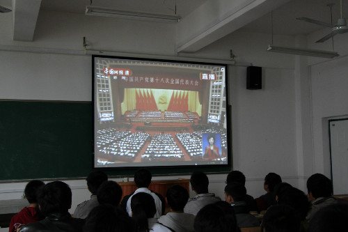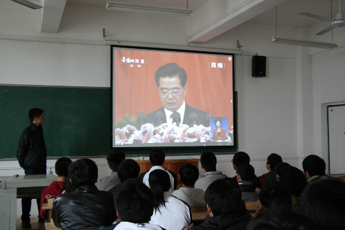 (学生通讯员 张小莲 柳敏超)11月8日上午,为学习贯彻党的十八大精神,坚定师生跟党走中国特色社会主义道路的信念,我院组织教师及学生观看十八大大会的开幕式直播。