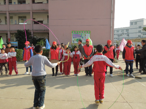 早晨八点,志愿者来到该小学,与同学们一起参加了开幕式。比赛过程中志愿者们细心努力地为同学们的安全着想,维护了赛场秩序,还为运动健儿们加油。比赛结束后,志愿者和小朋友一起跳绳,玩得非常开心。当笔者采访到该校校长时,他告诉笔者:“学校里老师太少,原本对组织好这场运动会有很大的困难。所以,我代表我们老师和学生感谢志愿者们。