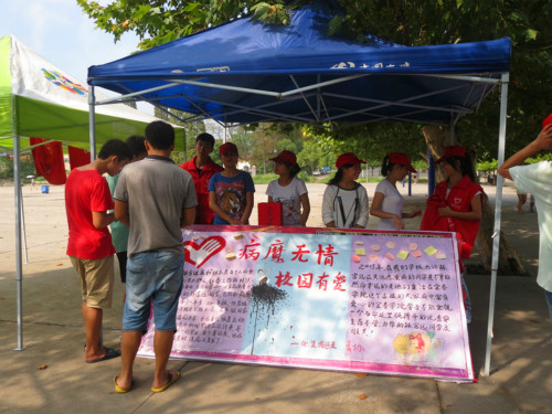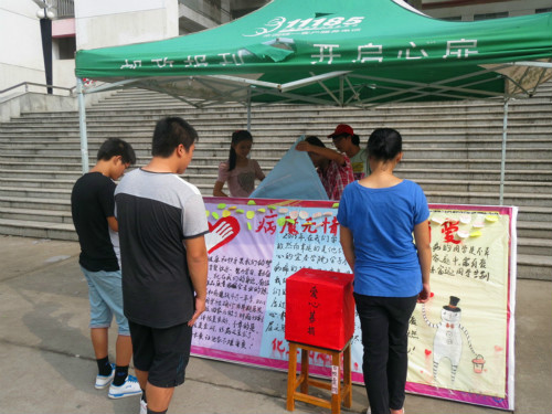 (学生通讯员陈仁香段雪梅黄志松)9月23日至24日,由我院青年志愿者协会发起的名为“病魔无情 校园有爱”的募捐活动在校园里全面开展,我院青年志愿者协会组织志愿者在校园里人流量较多的地方设置募捐地点。
