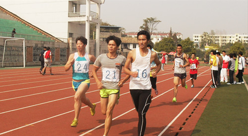 环形的跑道,一圈又一圈的坚持,湿透的衣衫,满头的大汉,无限追求,奋力拼搏,任疲倦爬满全身,任汗水溶于泪水,可脚步却从不停歇.你是否感受到烈日的照耀,那是烈日对你的祝福.你是否感觉到彩旗的摇摆,那是同学们对你的喝彩.去跑,磨练的是非凡的毅力,较量的是超常的体力,拼搏的是出类拔萃的耐力,把长跑边成漫漫征途.