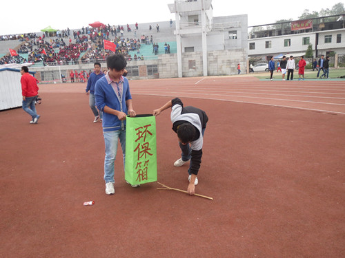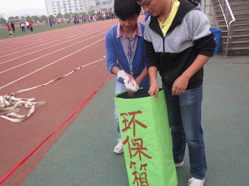 (学生通讯员 周亚玲)“努力建设美丽中国,实现中华民族永续发展”这是十八大报告字字铿锵的郑重宣誓。“美丽中国”展现了未来中国发展过程中,生态文明建设将是一个重点,对自然的尊重、保护将转变为队整个生态文明的构建,为人民群众勾勒出了与自然和谐共处的美好前景。为了将这个思想更好的落到实处,11月校运会期间,我院学生记者制造了垃圾箱,由专人负责,在赛场上奔波,捡拾垃圾。