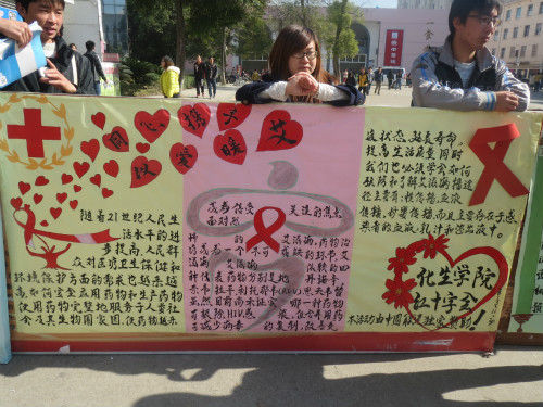 12月1日中午,我院红十字会在大学生活动中心进行了预防艾滋病的板报宣传。此次板报内容丰富,色彩鲜明,图文并茂的向广大师生介绍了艾滋病的现状、预防常识,让我校师生了解有关艾滋病的知识和预防措施。随后,在我院红十字会的带领下,志愿者们在校园里的树上挂上了红丝带,传递着对艾滋病患者诚挚的祝福,希望他们有一颗坚强的心来战胜艾滋病,同时也提醒同学们注意艾滋病防治问题。