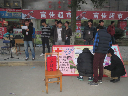 (学生通讯员 杨琪 罗南馨)3月15日至17日,我院与政法学院红十字会再次为我院身患肝癌的陈富远同学举行爱心捐款活动,并在大活、人文楼以及各种公共场合摆设募捐点。