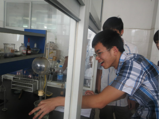 本次比赛以团队的形式进行,共分为13组,每组2-3人。据悉,在比赛前,每组的成员将以前学过的实验方法和装置进行了创新,并在5月17日下午进行了预实验,以保证本次实验的科学性和可操作性。比赛中,选手们规范地操作每一步实验步骤,仔细观察每一步的实验现象。最终,各组选手以科学严谨的实验态度,凭借不懈的努力,都出色的完成了自己设计的实验。其中,我院12级电气化学班实验“电解水的创新”,综合所学的化学和物理知识设计实验,其独到的创新之处,赢得评委好评,获得了本次比赛的特等奖。此外,12级生物工程班获一等奖,13级的药学班和制药工程班获二等奖。