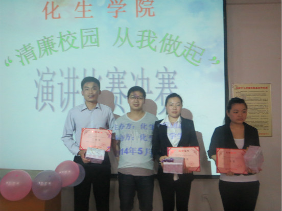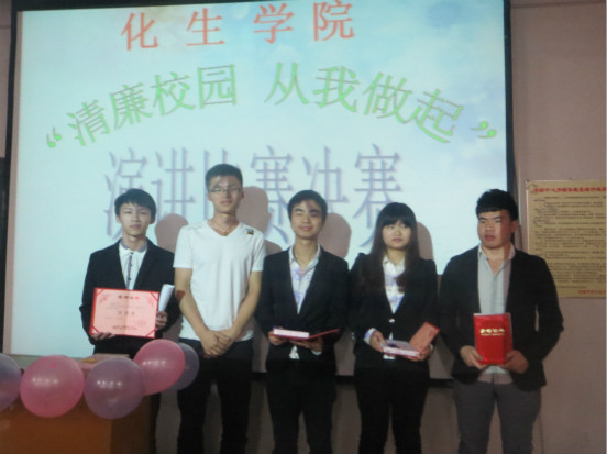 此次决赛由初赛脱颖而出的10名选手参加,评委们主要根据演讲内容和语言表达方面进行评分。在演讲比赛中,参赛选手精神饱满、感情充沛、表达流畅,各位选手紧紧围绕“清廉校园”这个主题并结合自身实践作了精彩演讲。其中,来自12生工班的付婷婷同学声情并茂地向观众诠释了心中的廉洁,她以其流畅、自然的语言赢得了观众的阵阵掌声,并将比赛推向高潮。经过激烈的角逐,付婷婷同学摘得本次比赛的桂冠。最后,黄良辉老师对本次比赛进行了精彩点评,他希望同学们要自觉抵制不廉政的诱惑,努力成为一个充满浩然正气的人。