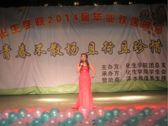 本次晚会在动感十足的开场舞拉开了序幕,整场晚会节目形式多样、内容丰富。其中,我院团总支书记南建忠带来的歌曲《开心的马骝》以其滑稽的动作形式,表达他对本届毕业生们的美好祝愿;毕业生代表队朗诵《昨日重现》回首了往昔的辛酸苦辣,在音乐的伴奏下,毕业生吐露着对母校和学院的依依不舍之情;由12药学班带来的话剧《青春不毕业》勾起了毕业生对大学四年中学习和生活的美好回忆,并将整个晚会推向高潮。此外,手语舞《祝你一路顺风》、舞蹈《青春离别》等诸多精彩的节目赢得了现场观众阵阵的掌声。最后,晚会在歌曲《同桌的你》中落下帷幕。
