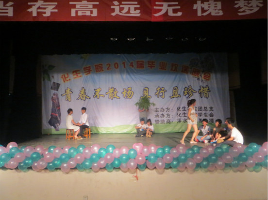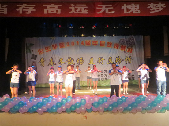 今天的离别不是结束,而是新的开始,道不尽的离别情,诉不完的留恋意,借此晚会让毕业生再次感受学校大家庭的温暖,以及对大学时光的美好回忆,同时祝愿2014届毕业生在新的人生旅途中一路顺风。