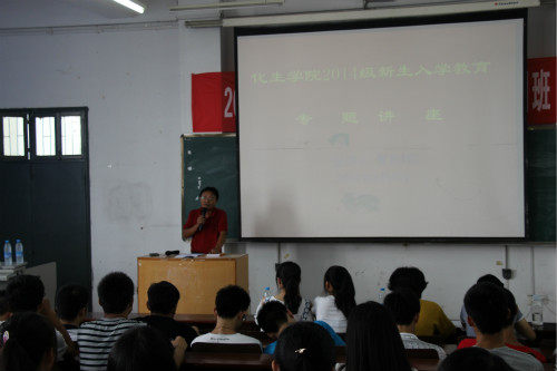 9月7日下午,我院辅导员邹立亮老师给14级新生担任了“安全知识与心理健康教育”入学教育讲座的主讲人。讲座上,邹立亮老师用幻灯片演示了《大学生活安全四防》和《让心灵的乐章在快乐中飞扬——谈大学生活的适应与情绪管理》。其中,《大学生生活四防》用各种真实案例警醒同学们要注意防火、防盗、防骗、防人身伤害,使同学们增强安全意识,积极做好防患工作。《让心灵的乐章在快乐中飞扬——谈大学生活的适应与情绪管理》则从关心新生和快乐新生两方面出发,教会新生转变高中生观念和做人做事的方式,尽快地适应大学生活,做一个成熟的大学生。最后,邹立亮老师希望同学们在提高自己安全意识的基础上能够在校园内快乐学习、快乐生活和快乐工作。