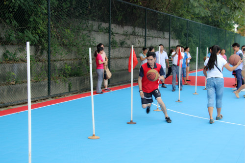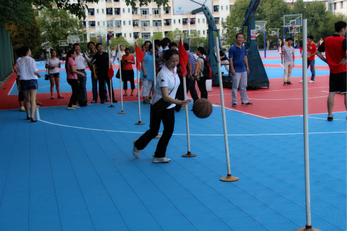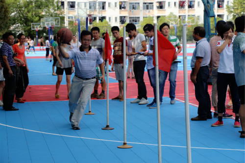 本次比赛以抽签的形式将全体教职工分为7人一组,共有10组进行比赛。比赛内容有定点投篮和带球绕杆接力跑两类团体赛比赛项目。在比赛中,队员们互相交流进球经验,不断调整自己的动作,以求用最好的状态取得好成绩。比赛持续了一个多小时,老师们全情投入,但有些队员们并不娴熟的投球、运球动作时时引得场下阵阵笑声,比赛处处展现着我院教师的活力与激情。经过激烈的角逐,此次比赛取得圆满结束。