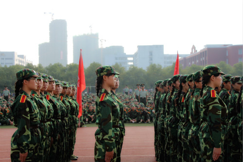 军训止,可耳边依旧萦绕着阵阵嘹亮的军歌声,苍茫天空下依稀盘旋着铿锵有力的口号声,14天的军训生活中,新生们用军人的标准和军人的纪律严格要求自己,不顾灼灼烈日的炙烤,无畏骤降风雨的考验,排队列、站军姿、定手臂、走齐步,反复操练动作,直到配合默契,队伍整齐划一,大家发扬“掉皮掉肉不掉队,流血流汗不流泪”的精神,以饱满向上的姿态投入到训练当中,不断地磨练、提升自己,充分展现出当代大学生勃发的朝气与坚韧的品格。