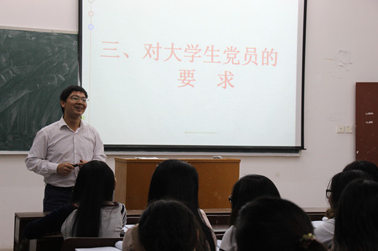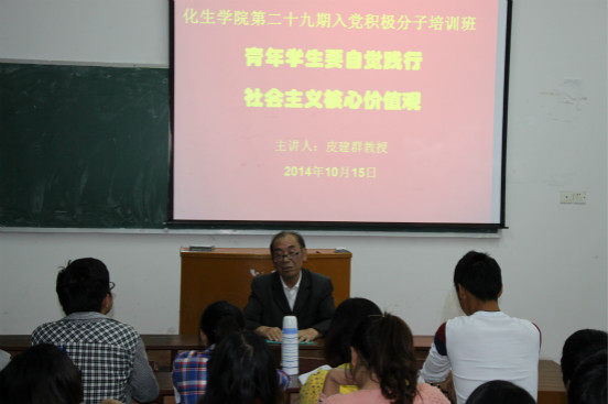 保持党的纯洁性是贯彻十八大精神,加强党的建设的一项重要内容。 10月16日晚,我院党总支副书记黄良辉就入党动机和态度的问题,向同学们提出了要求,他希望每位同学树立正确的人生观,价值观和世界观,坚定政治立场,明辨大是大非,同时大力弘扬民族精神和时代精神,积极践行社会主义核心价值观,以实际行动彰显共产党人的人格力量。