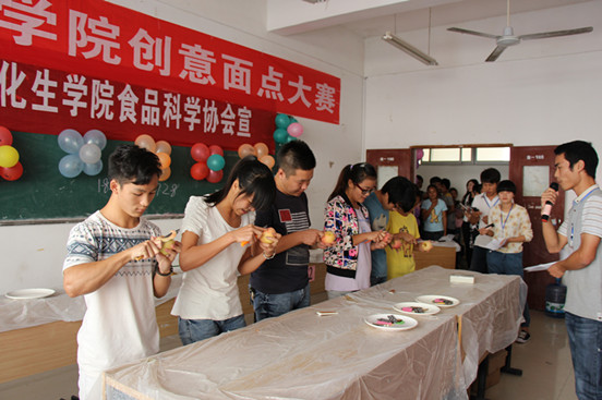 (学生通讯员王凤凤陈孟丽)为了丰富同学们的课余生活,10月26日,我院食品科学协会在二教楼举办了创意面点大赛。我院办公室主任赵云、食品专业老师叶文峰、冷桂华、彭玲莅临现场并担任本次比赛评委。我院各班级代表及该协会会员共组成12支代表队参加了此次比赛,80余名学生观看了此次比赛。