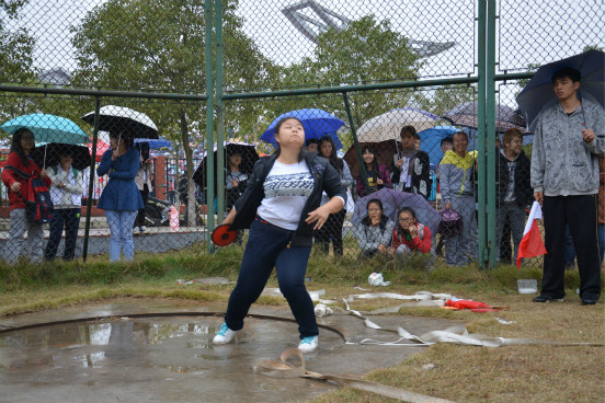 (学生通讯员 邓艳梅)11月7日上午,运动会普通女子组铁饼比赛正在有条不紊的进行着。与主赛场的热烈与欢呼不同,除去裁判员对运动员比赛的提示,比赛结果的报备声,少量观众偶尔的加油声外,女子铁饼赛区内很是冷清。天空也不作美,淅沥的小雨连绵不断,但这丝毫没有影响到运动员们的热枕与激情。