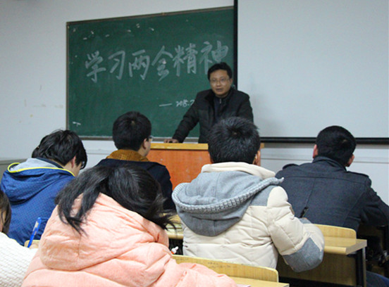(学生通讯员 陶守松 陈百顺)3月15日上午,历时两周的“两会”在首都北京落下帷幕。为传达“两会”精神、响应学校党委号召,当日晚,我院在二教楼成功召开了学习“两会”精神专题活动。我院党总支副书记黄良辉、团总支书记南建忠出席了此次活动,并和我院记者站全体站员一起学习了“两会”精神。活动由观看“两会”视频和师生互相交流学习两部分组成.