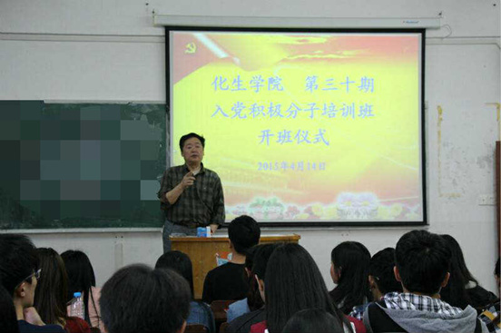 (学生通讯员陈百顺李雪斌)如何争取早日成为一名合格的共产党员,是每个入党积极分子的努力方向和迫切要求。为了使入党积极分子更加深入地学习党的知识,牢记党的宗旨,坚定理想信念,提高思想政治觉悟和政治水平,4月14-17日,我院在主教楼举办了第三十期入党积极分子培训班。我院40多名学生入党积极分子参加了本期党课培训。4月14日晚,我院举行了培训班开班仪式暨首堂党课,我院党总支书记张翘楚出席,院团总支书记南建忠主持开班仪式。张翘楚同志在开班仪式上强调了入党积极分子参加党课培训的重要性和必要性,要求参训同学端正态度,明确目标,严格要求,圆满完成本次培训的学习任务。