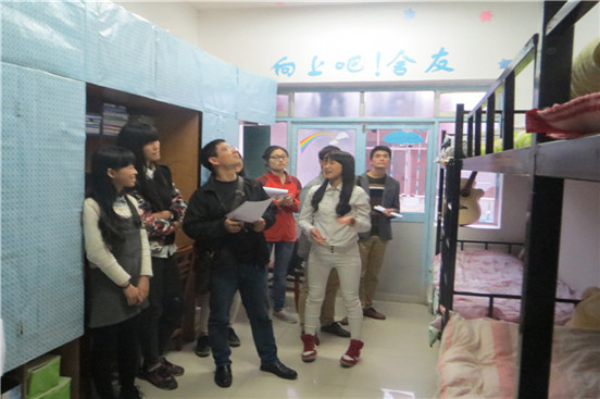 4月21日晚,我院党总支副书记黄良辉,学工科科长晏细元,团总支书记南建忠及各专业班主任参观了学生寝室,并担任此次活动的评委。初进寝室,整洁干净的寝室环境给评委们留下了好的印象,寝室成员对其寝室文化构想精彩的讲解更是得到了一致好评。学生寝室布置形式多样,有些寝室别出心裁,用旧报纸等废弃物做成的手工艺术品装扮寝室,其环保创新的设计理念让人眼前一亮;有些寝室毛笔书法的展示更加令人耳目一新,四周墙壁和衣柜表面有序张贴着学生临摹的毛笔书帖,置身其中,清新雅致。在参观完寝室后,老师们提出了几点建议,希望他们能够把寝室装扮得更好,在代表学院参加的校级寝室评比中取得优异成绩。