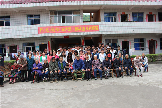 志愿者们与老人合影留念