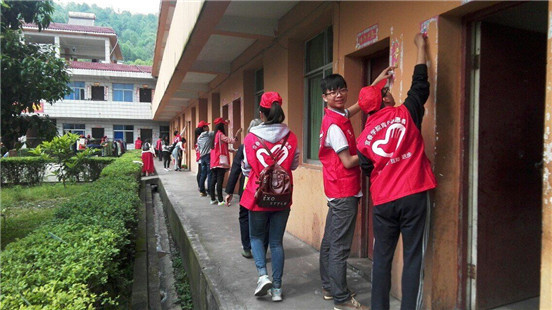 小志愿者们整理卫生 干劲十足