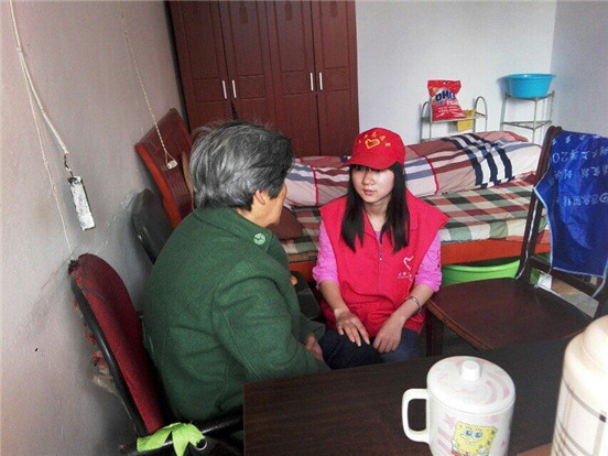 志愿者与老人促膝谈心