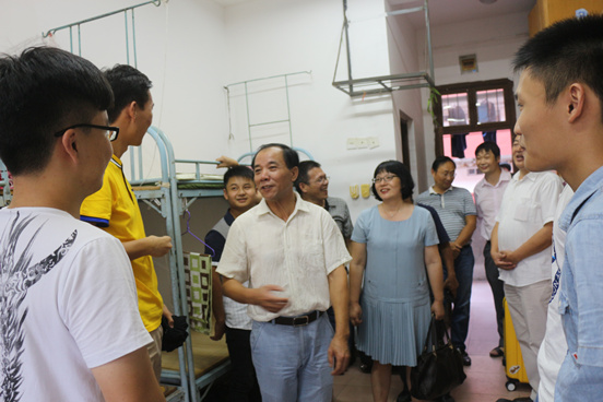 (学生通讯员 陶守松 刘旦)9月9日我校2015级新生已顺利入学报到,当天傍晚时分,党委委员、副校长周瑾晟在我院院长郭孟萍,党总支书记张翘楚,副院长熊知行、易剑峰,党总支副书记黄良辉以及相关科室负责人、辅导员班主任的陪同下,一同走访了我院2015级新生宿舍。