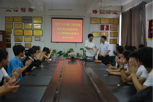 报告会上,面对在座的师弟师妹,校友陈建飞分外健谈,从求职的艰辛到创业的坎坷。他结合自己丰富的人生经历,告诉大家:知识改变命运,细节决定成败。当谈及他的公司经营时,他说,商道最重要的法宝就是诚信,只有诚信,才能让人生之路越走越宽广。随后,他还与同学们进行了现场互动,回答了大家提出的问题。他对同学们提出殷切期望,并鼓励大家广泛阅读,积极更新专业知识,与时俱进,厚积薄发,将来为祖国多做贡献。他朴实的语言、生动的实例、独到精辟的见解赢得了在座学生的阵阵掌声,使在场的同学受益匪浅。此次报告会系我院化学专业文化周活动之一。