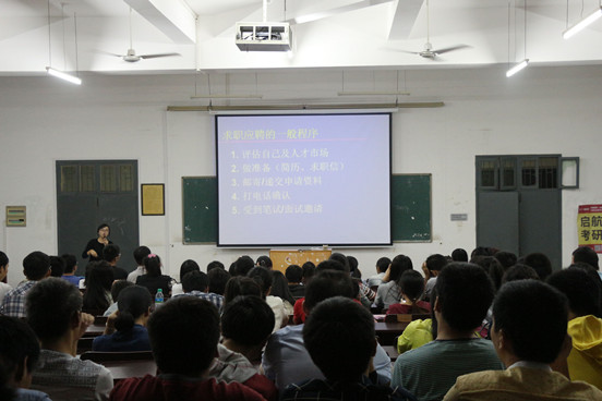 讲座伊始,李婷老师将求职过程比喻成一本书,把简历视为这本书的目录,将求职信比作书的具体内容,形象生动的阐述了简历和求职信的区别和重要性。然后,就“求职应聘技巧”,她向同学们提出了一些关于工作经验,求职格式,和心理测试等问题,并结合自身经验展现求职技能,在座的学生都受益匪浅。最后,李婷老师还给同学们提供了近期招聘会的消息,并鼓励大家积极参与,增加经验。