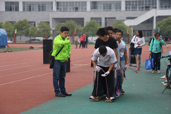 训练场上,运动员们热情饱满,积极备赛。我院领导在旁观摩了运动员们的各项训练情况,看望了所有备赛运动员,与他们亲切交谈。党总支副书记黄良辉首先询问了运动员们的赛前准备情况,并对大家多日以来坚持不懈、不畏艰苦的训练给予了高度肯定。同时,他希望运动员们在训练中集中精力,全身心的投入,通过不懈的努力与顽强的拼搏,挖掘自身潜力,勇创佳绩。他还多次强调,比赛重要,安全更重要,提醒运动员们科学训练,劳逸结合,注意保护身体和营养饮食,充分体现了我院领导对学生的关心和爱护。随后,我院领导来到团体项目的训练场地。“调整呼吸,加快步伐,稳中求进……”,南建忠老师为板鞋竞速训练作出亲切指导,并时刻为他们加油,他强调,在比赛当中不仅应注意技巧的运用,更应拿出集体主义精神,增强集体荣誉感,为我院在校运动会上获得更好成绩而团结协作,努力奋斗。