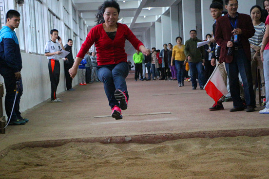 在此起彼伏的呐喊声中,我们教师们的跳远项目开始了,场地上各个院老师做着热身运动,让自己的身体处于最佳状态。最终,我院葛军英老师以3.07米第五名获得了佳绩。赛后,记者采访了葛军英老师,她说道:“比赛尽能力就好,名次不重要,重要的是增进教职工们之间的交流。”同时她也希望学校能够多开展体育活动。教师们平时的上课、科研等,很少有时间锻炼,参加这样的体育活动不仅能够锻炼身体,增强体魄,而且还能和全校学生一块享受校运会带来的乐趣。
