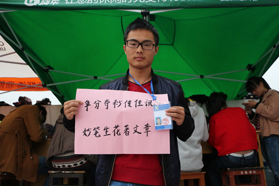 校运会对于记者站来说,是一场没有硝烟的战争,而作为学生记者,这需要关注生活,挖掘亮点,写出风格,创出特色,千言万语著真章。佩戴好记者证,提拿着纸笔,我院记者便开始了一天的服务工作,校运会期间,从庄严盛大的开幕式,到每一个激动人心的比赛现场,我院记者的身影随处可见。也许他们不能欣赏到师生们一场场扣人心弦、酣畅淋漓的比赛,但是他们感动于捷报频传后的阵阵加油与喝彩;也许因为赛事太多,同学们分身乏术,但是赛场上的每个比赛项目,都会有专人为了每一个可能出现的趣闻轶事与精彩镜头而耐心守候。