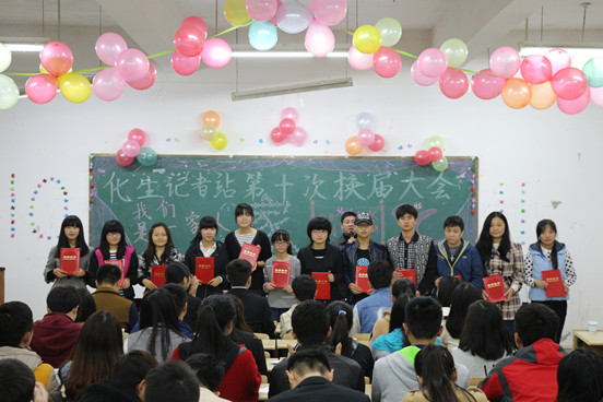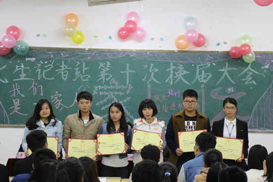 随后,第十届站长王凤凤对一年来的工作做出了详细的总结,并对新一届的成员提出了期望。新一届的站长史超玉进行就职发言,他回顾了自己在记者站的成长历程,并表明了要把记者站建设得更好的决心。老生代表吴利与新生代表徐秋月也分别上台发言。