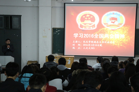 为了能让在校大学生更加深入剖析和学习两会精神,3月18日晚,我院于人文楼举办了以学习“两会”精神为主题的讲座。我院各协会代表,班级代表以及记者站全体成员参加了此次讲座,主讲人由院团总支书记南建忠担任。讲座伊始,南老师从两会的基本内涵、政府工作报告以及两会的热点深刻解读了“两会”精神,并指出全面建成小康社会、实现中国梦是我们国家的战略目标,全面深化改革、全面依法治国、全面从严治党这三大战略举措是全面建成小康社会的保证。随后,说到“两会”精神的学习应与实际联系时,南老师强调当代大学生应当充分发挥社团以及班集体的优势和作用,利用好新媒体平台,精心策划、重点宣传,在青年学生中掀起学习、宣传“两会”精神和习近平总书记系列重要讲话精神的热潮。