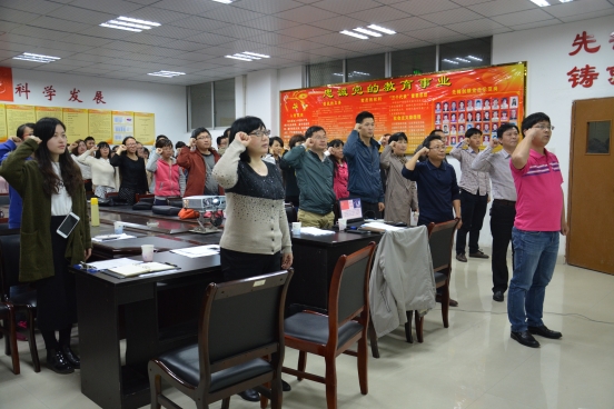 会议最后,举行了全体党员重温入党誓词仪式,为开展“两学一做”学习教育营造了积极向上的浓厚氛围。