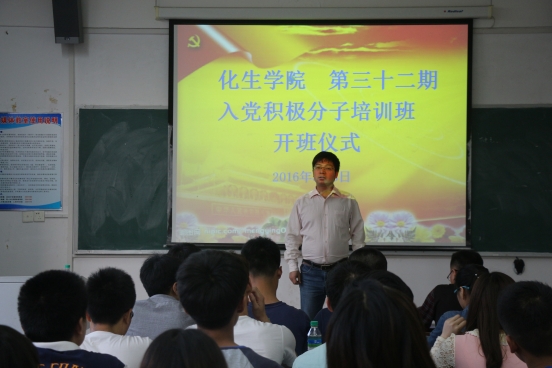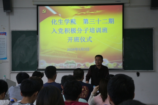 (学生通讯员 包丽锦 万乐) 根据学校的统一安排,5月3日晚上,我院在主教楼举行了第三十二期入党积极分子培训开班仪式暨首堂党课。我院党总支副书记黄良辉、团总支书记南建忠、学生党支部书记闵捷出席开班式,近40名学生入党积极分子参加了此次培训。开班仪式由团总支书记南建忠主持。