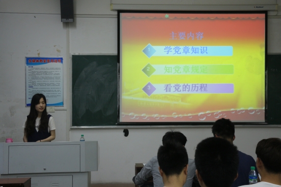 开班仪式后,我院学生党支部书记闵捷为参训学员主讲了题为《学习党章,尊崇党章》的首堂党课,她从学党章知识、知党章规定、看党的历程三个方面向同学们详细讲解了党的性质、纲领、党员条件与标准、党员义务与权利、党的组织和纪律、党的光辉历程等基本知识,同学们认真听课做笔记,提高了对党的认识,增强了看齐意识和党性观念。