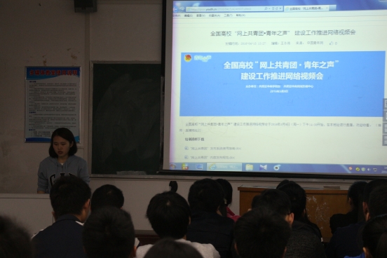(学生通讯员陈粟万乐)为落实“青年之声”运行一周年暨“网上共青团”建设工作电视电话会精神,全面推动全国高校共青团“青年之声”和“网上共青团”建设,5月9日下午,我院在主教楼组织该院共青团成员代表观看了“青年之声”建设工作推进网络视频会的直播。