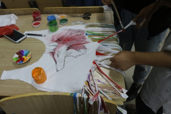 选手们现场制作衣服