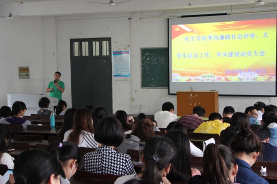 5月16日—18日,我院又先后分6个批次组织召开学生动员大会,就做好党风廉政建设社会评价和大学生征兵两项工作,在全院学生中进行广泛宣传和动员,由我院党委副书记黄良辉、团总支书记南建忠、辅导员李婷、闵捷等老师负责宣讲。通过宣讲让全院学生明确了党风廉政建设社会评价工作的重要意义、评价方式方法和相关要求,了解了我校党风廉政建设的开展情况及工作成效,从而以主人翁姿态积极参与党风廉政建设社会评价工作;同时让同学们认识到响应国家号召应征入伍当兵是当代大学生的使命担当和报国之举,了解了应征报名程序和相关优惠政策,从而激励大学生服从国家需要,踊跃投笔从戎,献身国防事业。