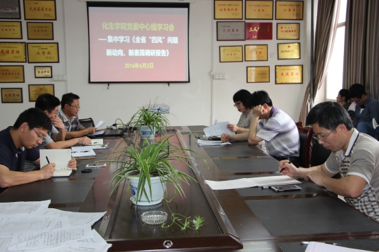 (化生学院供稿)6月2日下午,我院在院会议室召开基层党委中心组学习会,传达学习省委组织部下发的《全省“四风”问题新动向、新表现调研报告》文件精神。会议由我院党委副书记黄良辉主持,我院领导班子成员、党支部书记、科级干部、教研室主任等中心组成员参加了学习会。