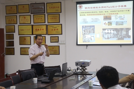 (学生通讯员胡杰雄 涂升德 吴永飞) 6月15日下午,应我校邀请,江西师大首席教授及博士生导师陈祥树做客我校第247期学府讲坛,在院会议室为我院师生作了题为《分子筛膜研究进展》的精彩学术报告。我院部分专业教师和学生参加了报告会,报告会由院副院长熊知行主持。