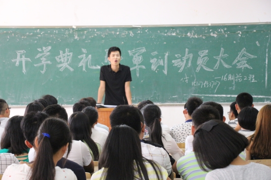 (学生通讯员王红 陈星)为了确保2016级新生以饱满的精神状态投入即将开始的军训生活,为他们接下来的大学学习生活奠定坚实的思想和作风基础,9月3日下午,我院组织新生辅导员和班主任在二教楼分班主持召开了新生军训动员主题班会,我院350余名2016级新生参加了此次主题班会。
