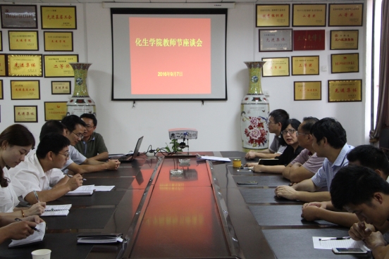 (学生通讯员汪锋) 为进一步营造尊师重教的氛围,激发广大教师的职业荣誉感和教书育人责任感, 9月7日下午,我院在院会议室组织召开了教师节座谈会,庆祝第32个教师节的到来。院长郭孟萍、副院长熊知行、易剑峰、院党委副书记黄良辉出席座谈会,我院全体青年教师及各科室负责人参加了座谈会,座谈会由黄良辉主持。
