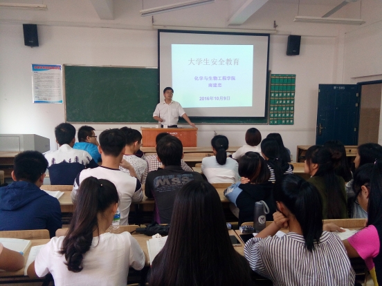 (学生通讯员 胡杰雄 吴永飞 包丽锦)10月9日下午,我院于人文楼成功举办了“安全校园,从我做起”及大学生安全教育讲座。我院全体新生聆听了讲座,院团总支书记南建忠、辅导员李婷担任主讲人。