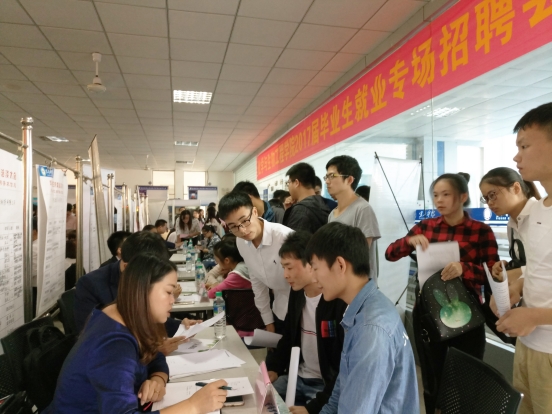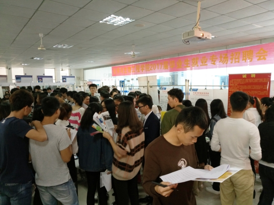 (学生通讯员 汪锋 赖泽浩)为了推动和帮助毕业生顺利就业,10月16日,在学校招生就业处的支持和指导下,我院在大学生活动中心招聘大厅成功举办了2017届毕业生专场招聘会。我校招生就业处处长黎明、就业科科长李芳,我院党委副书记黄良辉、学工科科长晏细元、辅导员李婷等亲临招聘会现场指导和协调会务事宜。来自省内外的30余家用人单位应邀来校现场招聘,我院2017届毕业生200余人踊跃参加了本次就业应聘,同时组织我院大三学生现场观摩了招聘会。