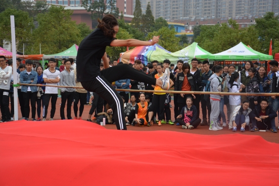 (学生通讯员 傅梦璇)10月27日,一年一度的田径运动会在田径场如期举行,开幕式结束后,一场场火热的比赛正井然有序的进行着,我校普通女子组跳高预决赛在田径场成功举行,比赛之前我院代表做好充分的热身运动。只见她经过一个半弧形的助跑,奋力蹬地,高台双腿,平稳落地,一些列动作都是那么浑然天成。最终以1.28米获得此项比赛第四名,她就是我院女子组跳高代表段桂洁。