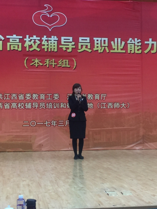 (学生通讯员 时海琴)为推动辅导员队伍专业化、职业化建设,提升辅导员工作水平和整体素质,3月27日至29日,由江西省教育工委、省教育厅主办的江西省第五届高校辅导员职业能力大赛在江西师范大学举行,来自全省41所本科高校的135名辅导员参加了此次大赛。经过预赛和决赛的激烈角逐,代表我校参赛的我院辅导员李婷老师在本次大赛中崭露头角,荣获了二等奖的好成绩,刷新了我校在该项大赛中获奖的历史记录,为学校争得了荣誉。