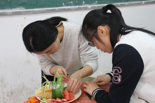 (学生通讯员朱婷 时海琴)为了提高学生的动手能力与创新性思维,4月23日下午,我院食品科学协会于二教楼成功举办第二届蔬菜水果雕刻大赛。担任此次大赛的评委有该协会指导老师叶文峰、我院学生会副主席唐斌贤以及我院团总支副书记毛霄夏,我院各班级代表观看了此次大赛。