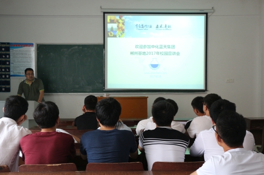 (学生通讯员 汪锋 傅梦璇)5月23日下午,我院于主教楼成功举办了中化蓝天集团专场招聘宣讲会。中化蓝天集团人力资源部经理周峰受邀担任此次宣讲会主讲人。该院13级部分学生参加了此次宣讲会。